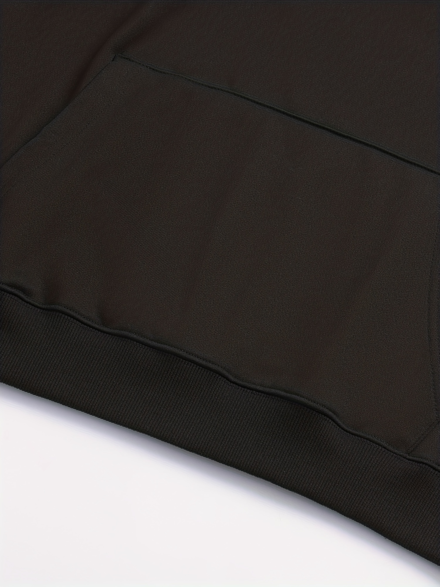 Men's Polyester Hooded Sweatshirt with Geometric Leaf Applique, Sports Style Active Hoodie with Slight Stretch, Regular Fit Knit Fabric Pullover - Casual Hip Hop Streetwear